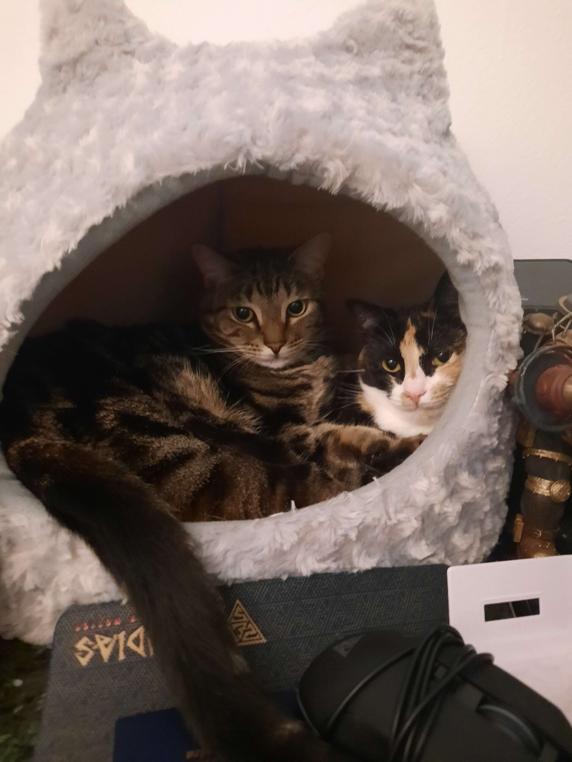 We both had our preferences for what we wanted in a cat so we were absolutely shocked to find the perfect posting of 2 adorable bonded kittens that fit both of our criteria so well. We, probably a little impulsively, picked them up right on the spot since we saw it as a sign – a decision we haven’t regretted for a single moment! Callie and Marie have been absolute joy to experience life with, even if they get up to mischief sometimes.