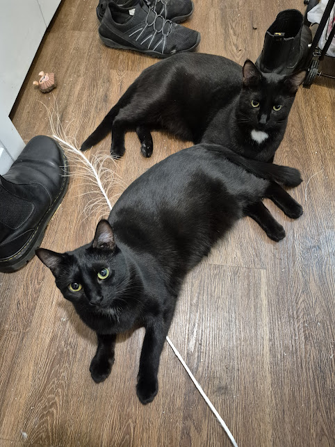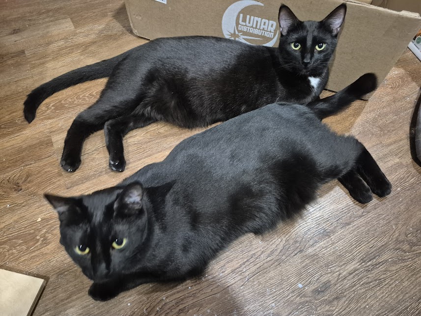 The volunteers at MEOW wanted to set realistic expectations and told me that it may take several weeks or even months before they warm up to me, and, well, it took Magpie about two hours after getting home before getting on my lap and using me as a staircase to explore the bookshelves, and SJ followed her lead a few days later.