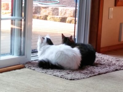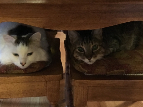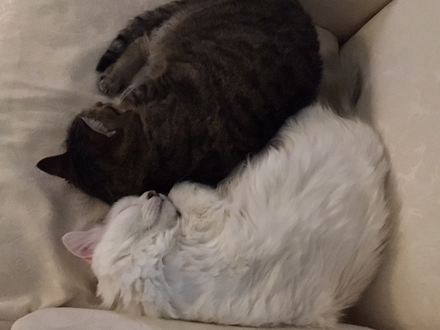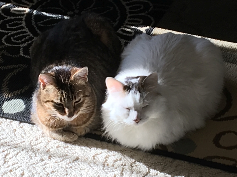 Since I already had 2 cats, 2 rabbits, and a dog, I really only wanted the white kitten I had fallen for, but Janis said he had bonded with one of his siblings. When Janis couldn’t find someone to take them both, she said I could come and get just the white kitten.